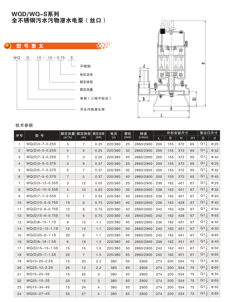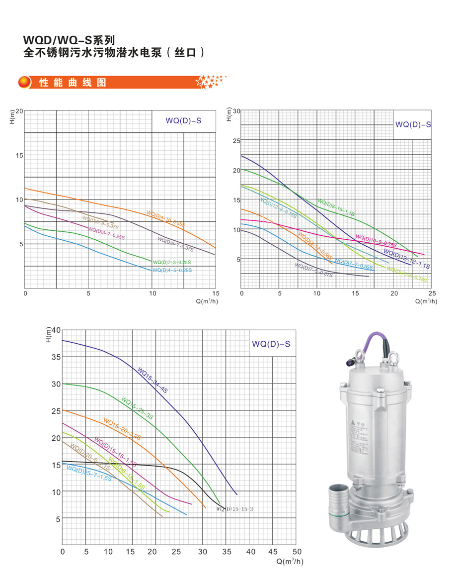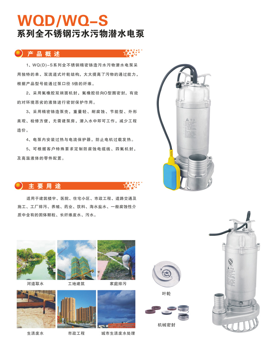 WQD/WQ-S 系列全不銹鋼污水污物潛水電泵