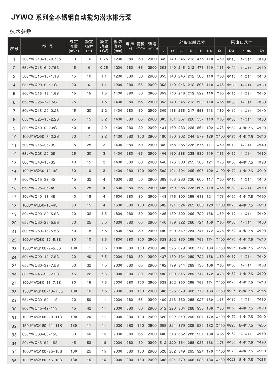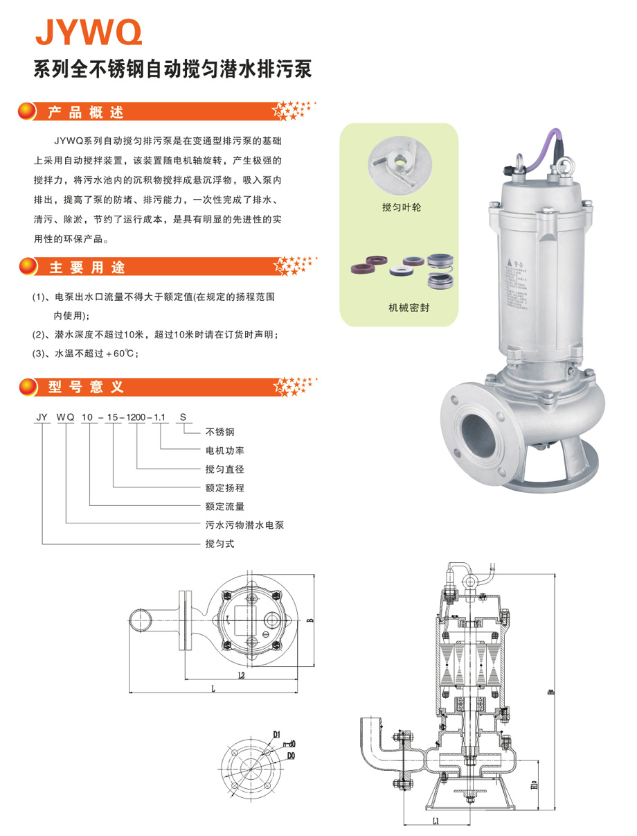 JYWQ 系列全不銹鋼自動(dòng)攪勻潛水排污泵